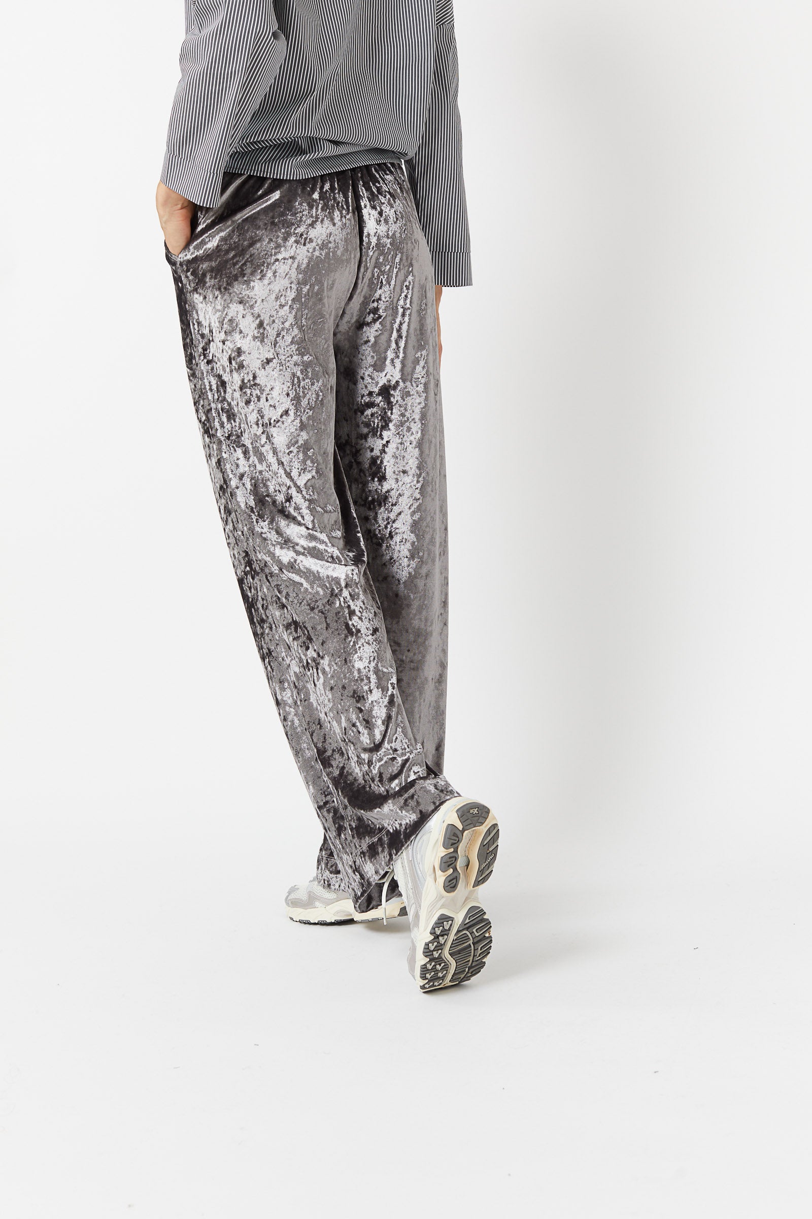 Le pantalon AVA attire tous les regards avec son panne de velours irisé à la brillance assumée. Sa coupe droite légèrement ample lui apporte une allure moderne, tandis que sa matière lumineuse en fait une pièce résolument originale. Confortable grâce à sa taille élastique, il twiste à merveille les tenues les plus simples. À porter de jour comme de nuit, pour un look qui sort du cadre sans en faire trop.