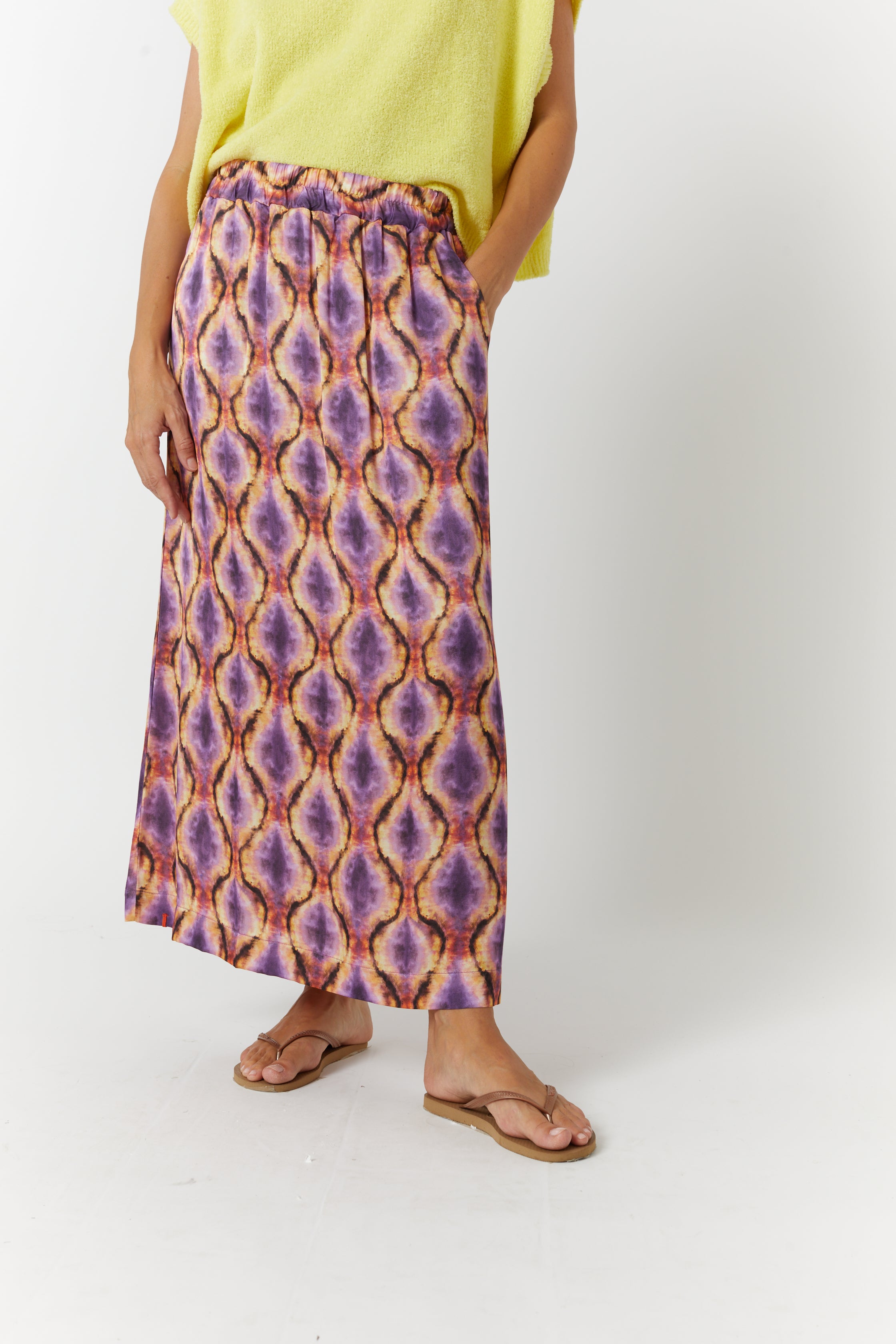 YLANGPRINT, l'essentiel estival signé MAEVY ! Cette jupe longue et plissée est la pièce parfaite pour accueillir les beaux jours avec élégance.